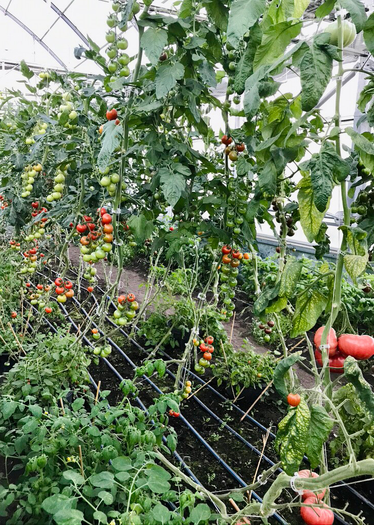 2024 was the first full growing season in our new greenhouse and we were thrilled with the results! We grew a wide variety of bedding plants in the spring for sale and for use in the market garden, and produced our first crops of greenhouse tomatoes, cucumbers, basil and baby ginger.