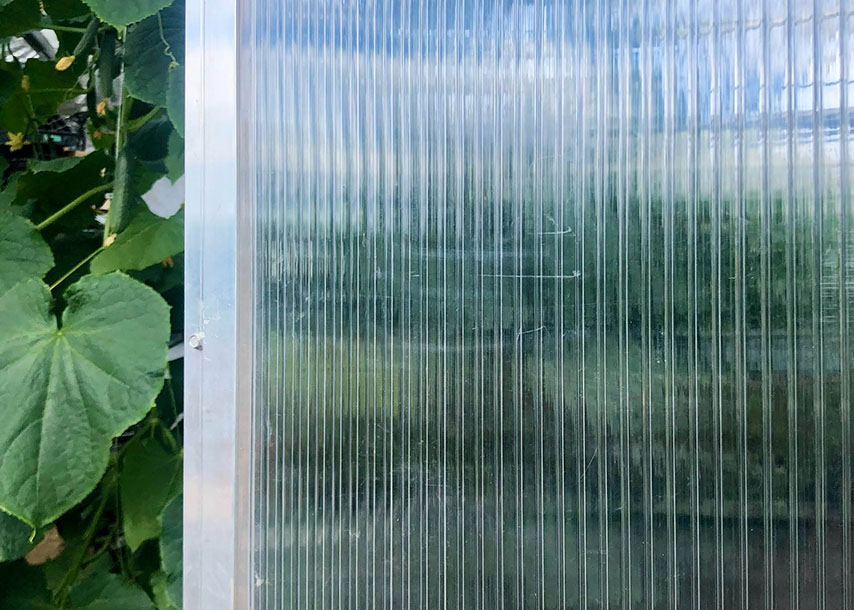 Polycarbonate is more insulating than other traditional greenhouse coverings (such as glass or polyethylene), has a high light transmission value, and is very strong and durable.